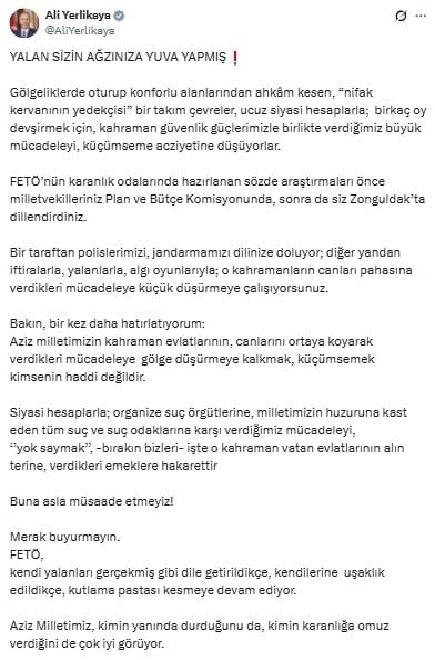 Ali Yerlikaya iddialara sosyal medya hesabından yanıt verdi.