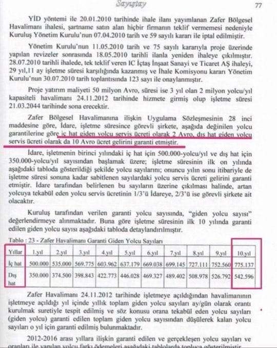 Yavuzyılmaz, hedeflenen yolcu sayısına ulaşılamaması nedeniyle hazinenin işletme şirketine bir garanti ödemesi yapmak zorunda kalacağını bildirdi. Bu ödemenin 6 milyon 68 bin 482 Euro olduğunu belirten Yavuzyılmaz, güncel kur üzerinden hesaplandığında bunun 300 milyon TL’ye denk geldiğini belirten “Bunun adı peşkeştir!” ifadesini kullandı.