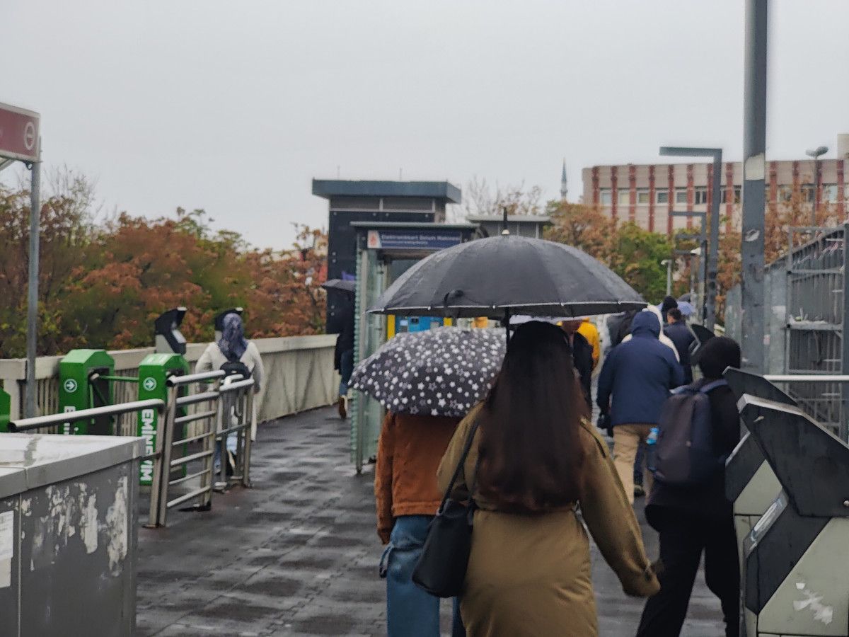 Meteoroloji’nin uyarılarını dikkate alan bazı vatandaşlar, işe giderken şemsiyeleriyle yağmurdan korunmaya çalıştı.