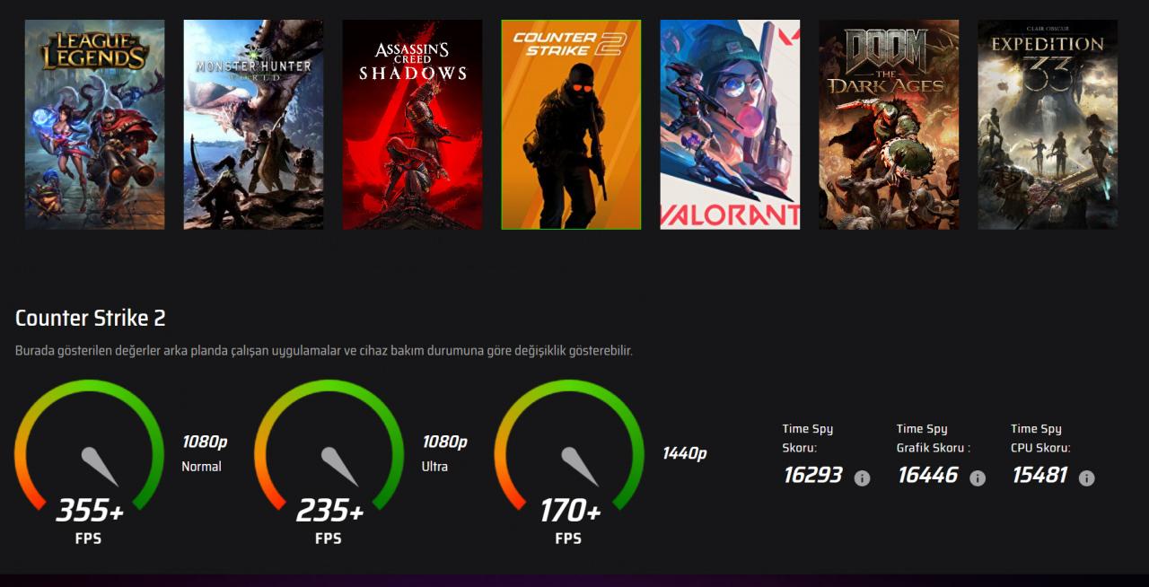 Bu ikili, e-spor odaklı oyunlarda 300 FPS’leri zorlayabilen bir performans üretirken, AAA yapımlarda 1080p çözünürlükte akıcı bir deneyim sunuyor.