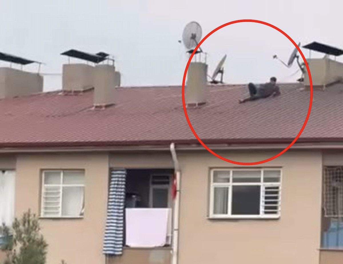 MAÇI İZLEMEK İÇİN ÇATIYA ÇIKTI